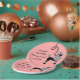 This cute French poodle paper plate design is derived from the classic poodle skirts of the 1950s. The pretty black poodle dog has gray pompons of fur with polka dots and a black stencil-style leash. It all rests on a vintage pink background with a light pink polka-dotted effect.