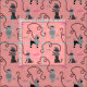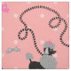 This cute French poodle fabric design is derived from the classic poodle skirts of the 1950s. The pretty poodle dogs are done in gray and black and have pompons of fur and stencil-style leashes. They intertwine in a repeating seamless pattern on a vintage pink background with a light pink polka dot effect.