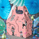 The design also includes bows in pink and grey. This modern, mid-century, girly design is perfect for anyone who loves rock 'n' roll, American nostalgia, and sock hops.