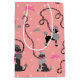 This cute French poodle gift bag design is derived from the classic poodle skirts of the 1950s. The pretty poodle dogs are done in gray and black and have pompons of fur and stencil-style leashes. They intertwine in a repeating seamless pattern on a vintage pink background with a light pink polka dot effect.
