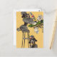 Vintage illustration of two black poodles. one is sitting on a tall stool writing a letter and the other is at the base of the stool
