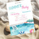 Pool Float Glasses Flowers Summer Birthday Party Invitation