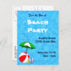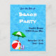 A custom beach or pool party invitation postcard template with a beach ball and umbrella on one side and room for your return address on the back in fun letters. Click Customize It to change fonts, sizing and more, even save you design for later.