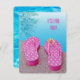Pink and white polka dot flip-flops by swimming pool for pool party invitation.