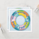 A colorful inner tube pool float is stenciled with "You're Invited to a Pool Party! on the front - with room for your customized party details on the back. Great for any sort of pool party! Matching stickers and birthday party version are also available:
