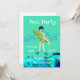 A modern fun party invitation for a pool party featuring a cute graphic of a swimming boy. The text on this invitation is fully customisable to include your own personal details. Blue and white theme