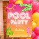 Vibrant and lively welcome sign design that combines tropical elements with bold neon colors. It’s perfect for events like Pool Parties, luau parties, birthday celebrations, or any occasion where you want to infuse a sense of fun and excitement