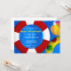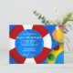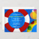 Custom Party Invitations will remind you a cool dip in the pool! Red, white, yellow and green pop against colbalt colored water.