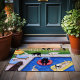 Labrador Door Mat. Whimsy and funny Labrador Retriever Painting painted by Naomi Ochiai. Wonderful dog gifts for Labrador lover's home. Black Labrador, Chocolate Labrador, Yellow Labrador are all painted in the picture. Happy pool party!! Each Labrador is having fun in his/her way in the pool. Colorful and cheery summer scene with Labrador Retriever dogs. You can customize text as you like. Remove sample text and insert yours.