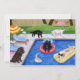 Whimsy and funny Labrador Retriever Painting painted by Naomi Ochiai. Wonderful dog gifts for Labrador lover's home. Black Labrador, Chocolate Labrador, Yellow Labrador are all painted in the picture. Happy pool party!! Each Labrador is having fun in his/her way in the pool. Colorful and cheery summer scene with Labrador Retriever dogs. You can customize text as you like. Remove sample text and insert yours.