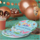 Plates for a birthday party by the pool featuring a unicorn and flamingo pool float. With our easy customization options, you can make this birthday party a unique and personalized experience for you and your loved ones. Join us for a memorable day filled with laughter, joy, and fun by the pool!
