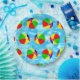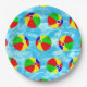 Summer swimming party plates featuring a beach ball in a cool pool. Add text to personalize.