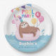 Pool Party Sloth with Balloons Summer Birthday Paper Plates
