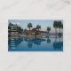 Pool view that looks onto the ocean on the front of the business card and a childrens play area with slides into the childrens pool of the back of the business card,