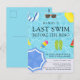 Make a splash with this poolside bachelor party invitation postcard. A bright and colorful design for fun in the sun with the text "Last Swim before the ring.” With a bold, modern layout and playful pool details, it’s perfect for inviting the crew to an unforgettable celebration by the water.