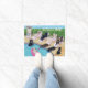 Poolside Party Labradors Painting Welcome Doormat. Whimsical and funny Labrador Retriever artwork by Naomi Ochiai. Lab pups enjoy poolside party in a certain summer resort!