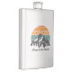 The product is a good size and came exactly as it was pictured. The lid is not attached to the flask, which could be dangerous on drunken nights... The print came out surprisingly well and looks very sharp. Would definitely recommend.