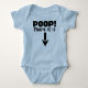 This baby bodysuit design features the humorous phrase "Poop there it is" printed on the front. This baby bodysuit is perfect for parents with a sense of humor or for gifting to friends and family with a new baby. It's a fun and playful addition to a baby's wardrobe and is sure to be a conversation starter.