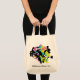 The printing came out very well, better than I had anticipated. The natural color fabric is sturdy with strong seams and comfortable handles. This tote fits easily over my shoulder. As it is filled, the bottom flattens out--very cool! I would buy this product again. This grocery tote holds a lot of groceries! The image quality was very good. The colors were a little darker than I had expected. The darkness may have been due to printing on a natural color fabric rather than on white. The cat design is attractively centered on the tote. The spirit of the design is very lively, just as it appears on the Zazzle website.