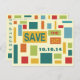 Colorful Pop Art Abstract Save The Date Postcard Graphic Design By Artinspired. Modern design features squares and rectangles. This save the date postcard works well for weddings, anniversaries, surprise party, graduation, sweet sixteen, bar mitzvah, bat mitzvah, reunions, fundraisers and more.