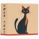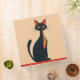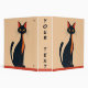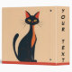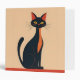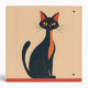 A black and red cartoon cat, in a mid-century modern style, siting on a red shelf or floor, against a peachy background, creates a charming three-ring binder. Perfect for anyone who loves cats.