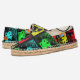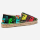 These comfortable and casual women's espadrilles are decorated with a pop art red, yellow, green, blue panda design and red and white tribal liner. You can change the background and liner. What fun shoes! All Rights Reserved © 2019 Alan & Marcia Socolik.