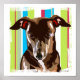 All dog lovers - especially Italian Greyhound, Whippet, and Greyhound owners - will appreciate this canvas print! Showing the festive side of the breed with lime, turquoise, and bright berry colored stripes behind a lovable pup! Perfect fun accent to any room in the house or your business.