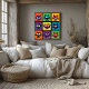 This playful pop art cartoon bat grid captures the mischievous and fun side of Halloween with vibrant bats in a variety of bold colors. Perfect for Halloween lovers and those who appreciate cute and spooky décor, this modern wall art is ideal for children’s rooms, party decorations, or gifts. Available in multiple sizes, it can be customized with a fun Halloween phrase or family name for a personal touch.