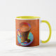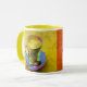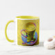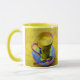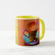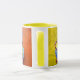 Colorful Pop Art mug with artwork of coffee cups in orange and yellow. Great gift mug any woman would love. Personalize by adding any text you want.