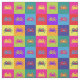 Bright and cheerful pop art style fabric featuring psychedelic crabs in brightly coloured squares.