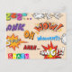 This retro comic style lettering & design is perfect for any super hero collector or fan boy. The bright graphics have hard lines & bold coloring.