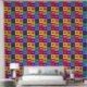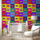 Fun wallpaper in a retro pop-art style, of crabs in multicoloured squares. Guaranteed to brighten up any room.