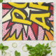 Fun trendy comic book pop kitchen towel. A great gift for you, your friends or your family. A cool design that is sure to add a splash of colour to your kitchen decor. Why not put a little wham, zap, pow into your day today!