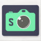 Bold and striking pop art camera design in bright green with background color available to customize.