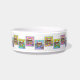 This is a heavy, durable bowl decorated with Tibbies of many colors, the perfect size for hungry/thirsty Tibs. The design is interesting and printing clear.