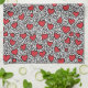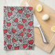 This vibrant pattern features bold, red hearts scattered across a white background filled with dynamic black doodles. The playful design, reminiscent of pop art, uses strong lines and whimsical shapes to create a lively and energetic visual. The juxtaposition of bright red hearts and abstract black strokes evokes a sense of love and spontaneity.