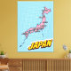 A stylized map of Japan in a pop art style, featuring a pink outline of the islands against a blue dotted background. The map highlights major cities like Tokyo, Osaka, Kyoto, and Nagasaki. The word 'JAPAN' is written in bold yellow letters with a white outline, adding a dynamic and playful touch. The overall design evokes a retro comic book aesthetic, with bold colors and a sense of energy.