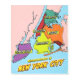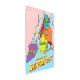 A stylized map of New York City, rendered in a comic book style. The five boroughs are outlined in bold black lines and filled with vibrant colors: Manhattan (red), Brooklyn (yellow), Queens (orange), The Bronx (green), and Staten Island (purple). Each borough is labeled with its name in a white box with a black outline.