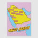 This visually striking map of Saudi Arabia is a fusion of geography and pop art. Bold colors, iconic imagery, and playful typography come together to create a unique and captivating piece.