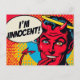 AI generated art of an devil with angel wings in a comic book style that says I'm IInnocent which is an AI generated spelling error