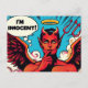 AI generated art of an devil with angel wings in a comic book style that says I'm Innocent with a slight glitch on the text