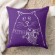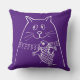 An Adorable Drawn Cat With Her Fish On A Purple Large Throw Accent Pillow. Perfect For A Girls Bedroom Décor.