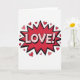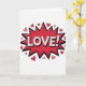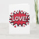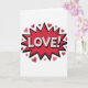 This Valentine’s Day card bursts with energy and affection through a bold, eye-catching design. At the center, large block letters spell out “LOVE!” inside a bright red, starburst-style shape that feels lively and expressive. The letters are a soft pale pink, detailed with tiny red dots that add texture and charm. Crisp black outlines give the design a strong, classic look. Surrounding the message, small hearts in shades of red and pink scatter across the white background, creating a feeling of joy and warmth. The overall scene feels upbeat and full of emotion, perfect for expressing big feelings in a fun, confident way. This card makes a strong statement of love and is sure to bring a smile to someone special on Valentine’s Day. ❤️