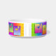 This is a heavy, durable bowl decorated with Tibbies of many colors, the perfect size for hungry/thirsty Tibs. The design is interesting and printing clear.