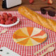Pop Art Modern 60s Funky Geometric Rays in Orange Paper Plates