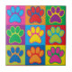 Pop Art-styled animal paw prints in a colorful checkerboard.