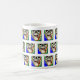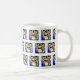 Attract the money vibes with this fun pop art skull mug! This patterned mug features pop art images of a skull smoking a cigar and is surrounded by dollar signs and the color blue on a white mug background. Fun and cool!
