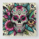 Pop Art Sugar Skull Square Wall Clock