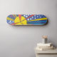 Cosmic rays from a sunburst in space, that's the feature on this skateboard. It's hand drawn and digitally colored. The artwork by LyricalSixties is unique, and was inspired by space time travel. The colors are bright primary - red, yellow and blue.