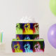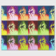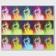 A ballerina figure repeats in colorful pop art fashion on this wrapping paper.
